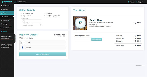 To purchase a subscription plan, log in and navigate to Plans, or https://www.sandbox.panopedia.com/account/plans.