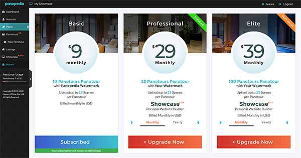You may upgrade your existing subscription at anytime. To do so, log in and navigate to Plans, or https://www.sandbox.panopedia.com/account/plans.