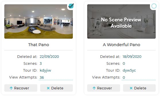 If the number of Panotours you attempt to restore exceeds your account limits, some of them may not be restored.